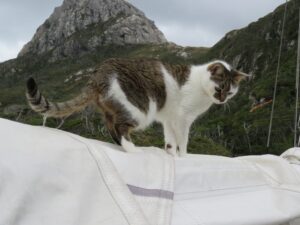 On monday may 21 th 2007, aged of 2 months, I picked her on the stairs of the Môle de l’enfer, brought by Sylvie, in the Port Rhu of Douarnenez. From there she go through the world, on seas and oceans, crossing the Pacific from North to South, from East to West, crossing the Atlantic four times, putting her paws in more than 35 countries, from Northern Europe to Africa and Americas, from Alaska to Cape Horn, sailing 81 143 nautical miles in her long life of sailing cat.