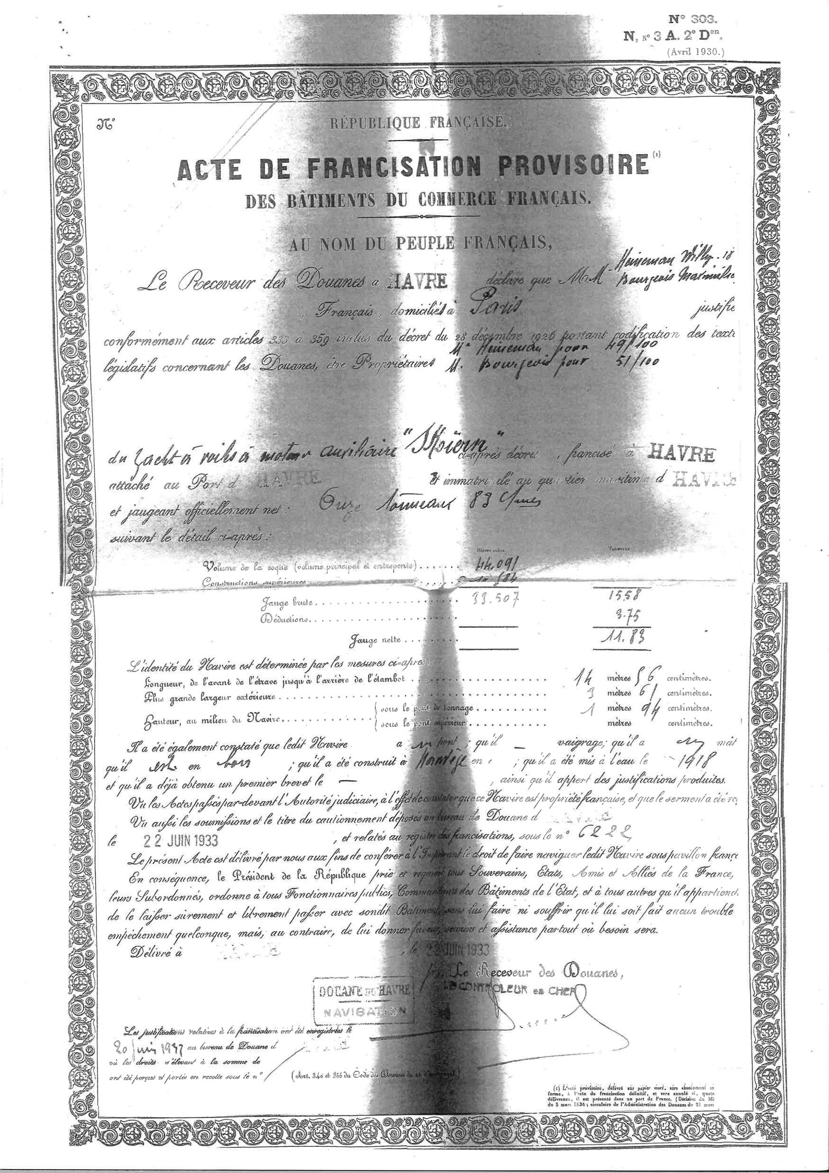 Registrado en Le Havre (Francia).
